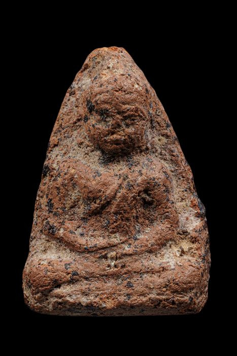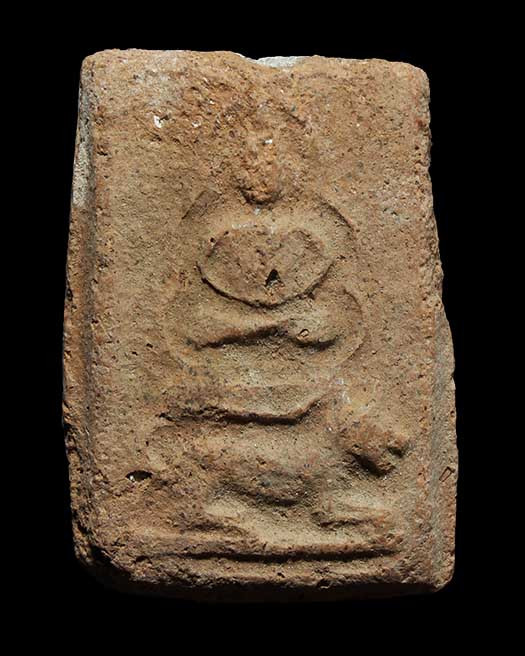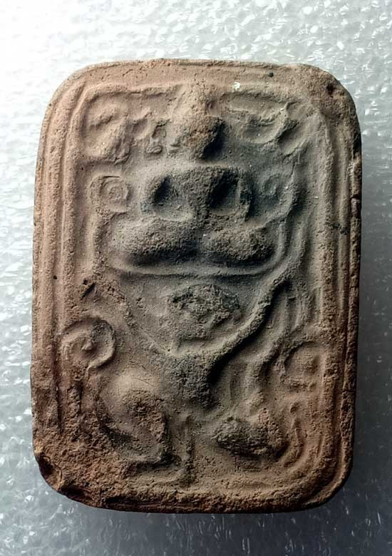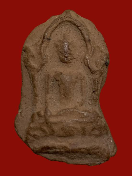 พระเนื้อผงชุบรักเก่า หลังฝังตระกรุดเก่าไม่ทราบที่ เคาะเดียวแดง |
