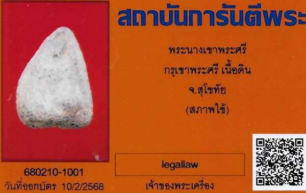 พระนางเขาพระศรี กรุเขาพระศรี สุโขทัย+บัตรรับรองพระแท้*270 |