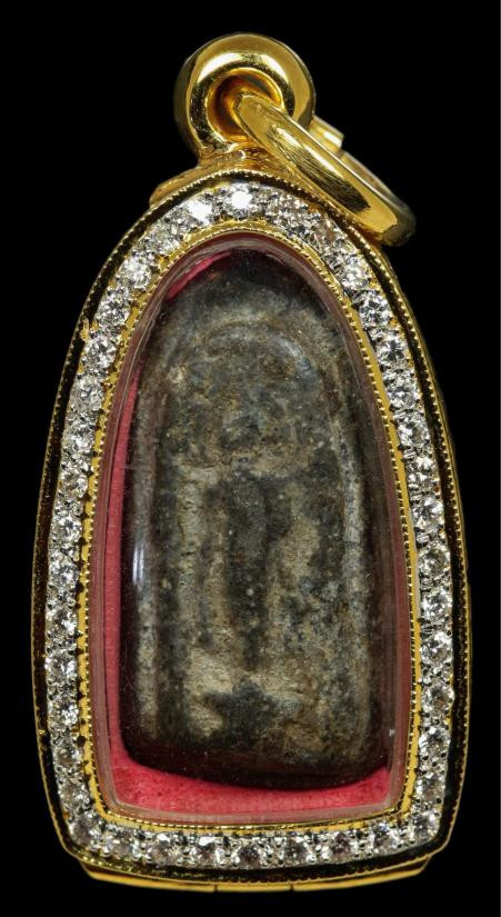 พระพุทธ หลวงพ่อปาน พิมพ์ทรงนกบัวเม็ด เลี่ยมทองฝังเพรชพร้อมบัตร |