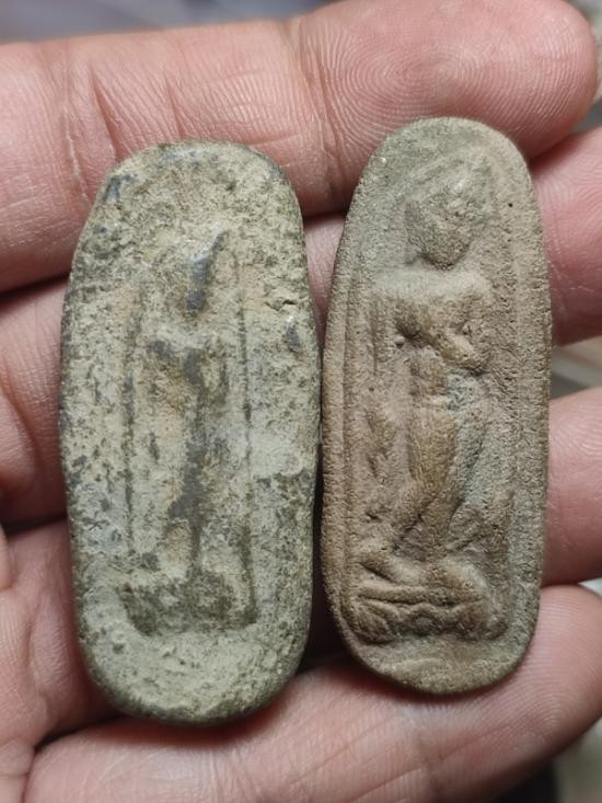 พระลีลาฝักดาบ กรุดอนลาน สุโขทัย คู่ พิมพ์เล็กปีกกว้าง(หายาก) +พิมพ์ใหญ่ กดลึกดีครับ |