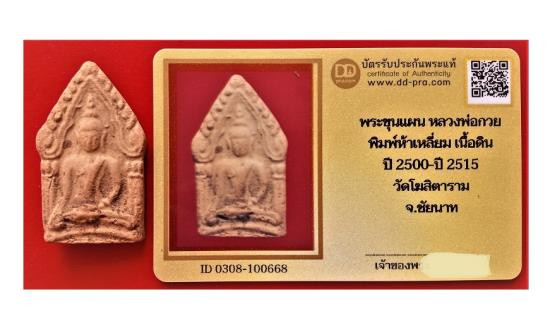 พระขุนแผน หลวงพ่อกวย พิมพ์ห้าเหลี่ยม หลังยันต์ เนื้อดิน ยุคต้น ปี 2500-ปี 2515 วัดโฆสิตาราม + บัตรรับรอง |