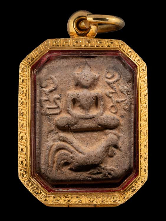 พระกรุวัดเงินคลองเตย พิมพ์ฐานเตี๊ย สวยแชมป์ เลี่ยมทองลงยาสั่งทำ%สูง พร้อมบัตรรับรอง |
