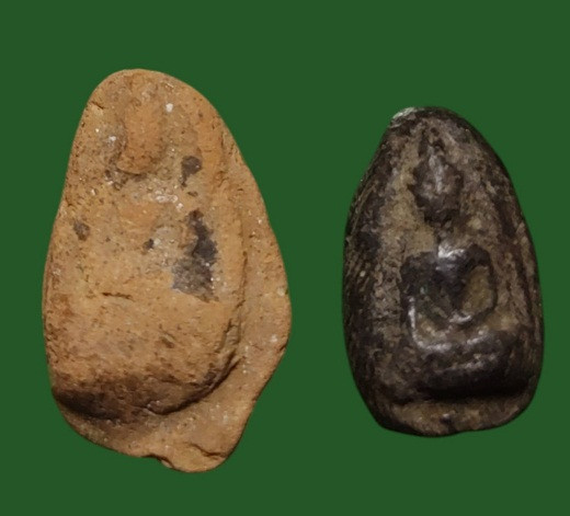พระกรุคลองกระเทียม พิมพ์พระร่วงนั่ง จ.สุพรรณบุรี มี 2 องค์ ข้างในอุดกริ่งไว้ เขย่ามีเสียงดัง สภาพสวยครับ |