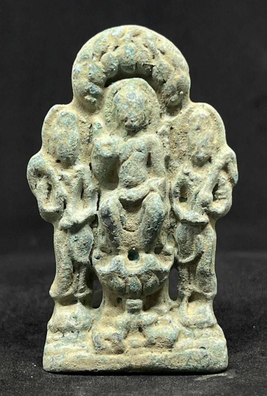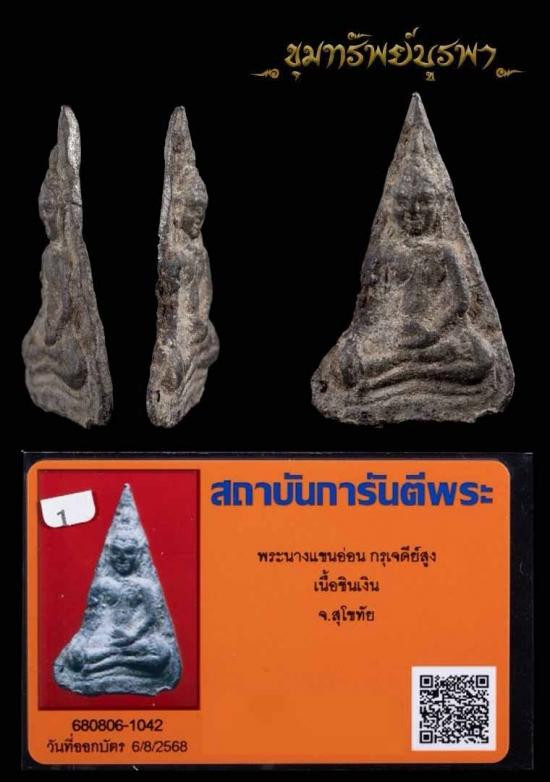 พระนางกำแพง พิมพ์ตื้น เนื้อชินเงิน กรุวัดบรมธาตุ จ.กำแพงเพชร + บัตร G-Pra |