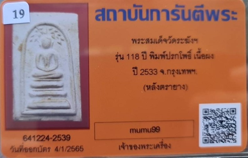 ## สมเด็จวัดระฆัง อนุสรณ์ 118ปี พ.ศ.2533 พิมพ์ใหญ่ "พระสวยเดิมไม่ผ่านการใช้.หลังปั้มตรายาง...พร้อมบัตรรับรอง.""รับประกันแท้ตลอดฃีพและแท้ตามมาตรฐานสากล....... อนาคตดี ถูกๆเลยครับ.... ราคายังไม่แรง....ไ |