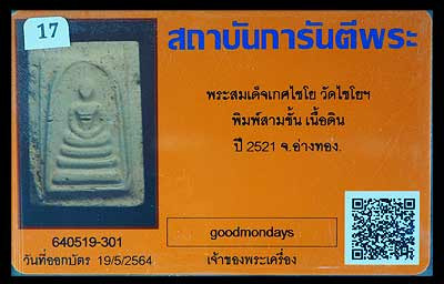 วัดใจ พระสมเด็จบางขุนพรหมพิมพ์ใหญ่ 5 จุด ปี17 มาพร้อมบัตรรับรอง |