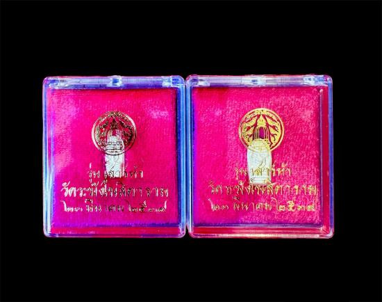 พระสมเด็จวัดระฆัง รุ่น 214 ปีเกิด สมเด็จพระพุฒาจารย์ (โต พรหมรังสี) หลวงปู่หมุน ร่วมปลุกเสก ปี 2545 พิมพ์ใหญ่เกศจรดซุ้ม พร้อมกล่องเดิม จำนวน 2 องค์ |