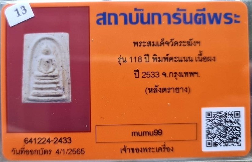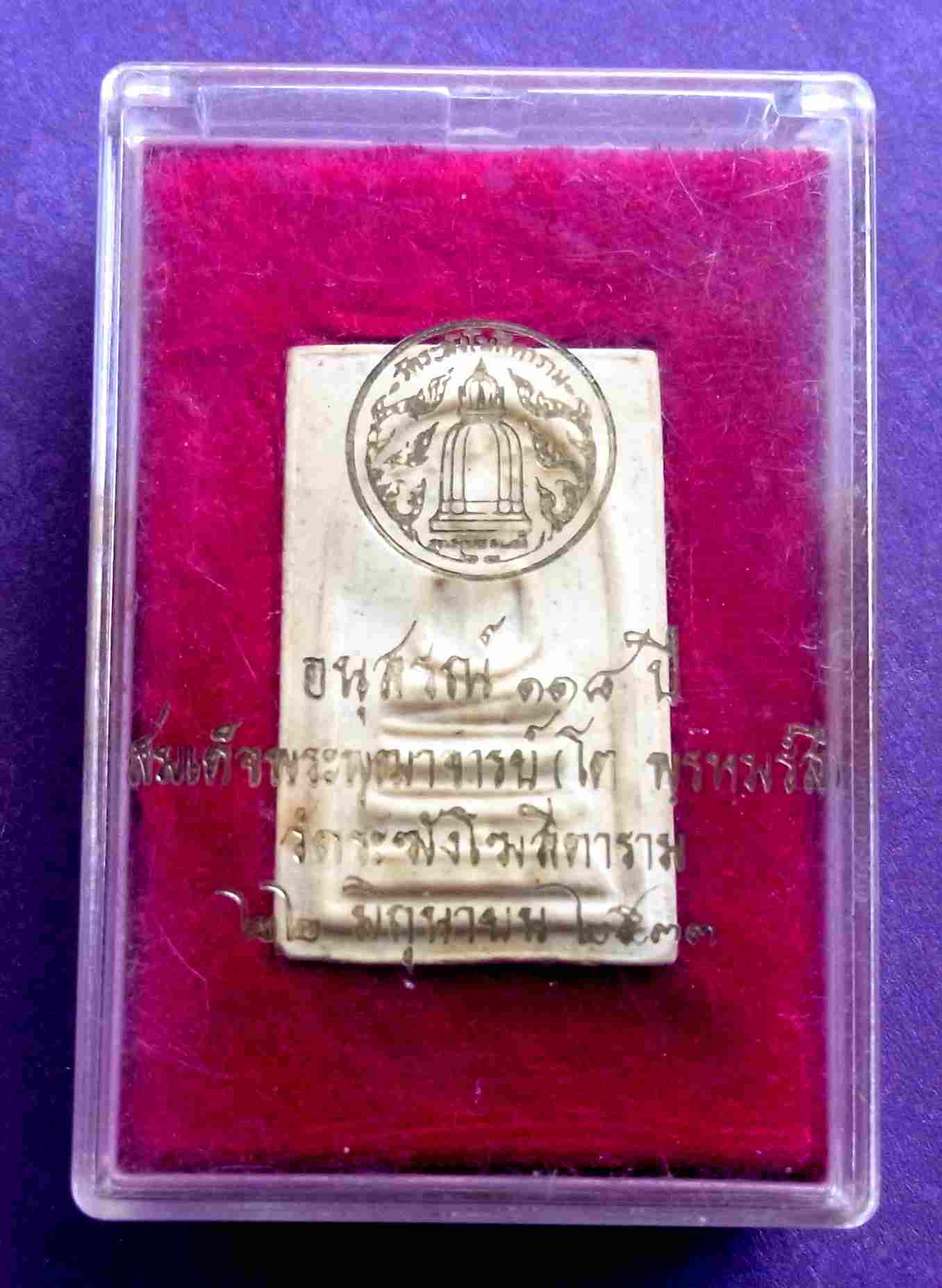 พระสมเด็จวัดระฆัง อนุสรณ์ 118 ปี เนื้อผง ปี 2533 พร้อมกล่องเดิม (( แดงวัดใจ 200 )) |