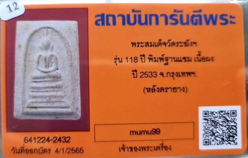พระสมเด็จวัดระฆังฯครับ พร้อมบัตรรับรองจากเว็ป ไม่ทราบที่ ยี่ห้อรุ่นครับ พระรังเก่า ชุดนี้ผมไปเหมาบ้านที่กรุงเทพฯมาได้มาหลายอย่าง ทยอยลงครับ วัดใจเท่าไหนเท่านั้นทุกรายการครับ |