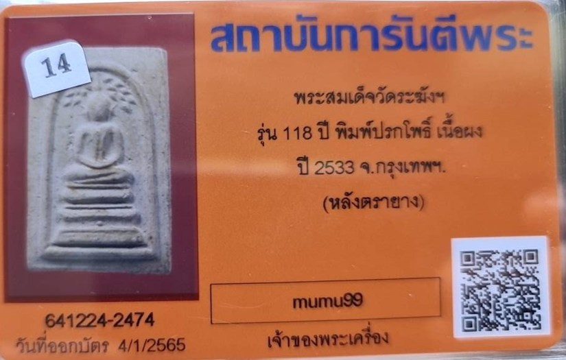 สมเด็จปรกโพธิ์ 118 ปี วัดระฆังฯ พ.ศ.2533 สภาพสวยตามรูป |