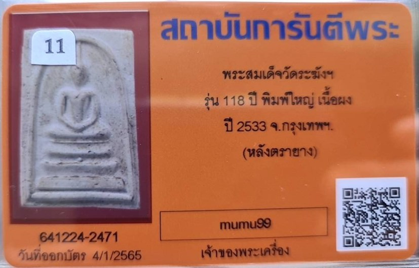 สมเด็จวัดระฆัง อนุสรณ์ 118ปี พ.ศ.2533 พิมพ์รูปเหมือน พระสวยเดิมไม่ผ่านการใช้.หลังปั้มตรายาง..อนาคตดี พร้อมบัตรรับรอง |