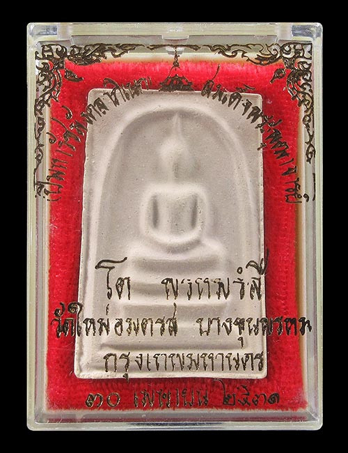 สมเด็จพิมพ์ใหญ่ เนื้อผง ไข่ปลาเดี่ยวผสมผงเก่า วัดใหม่อมตรส กทม.พศ 2531 พร้อมกล่องเดิมจากวัด |