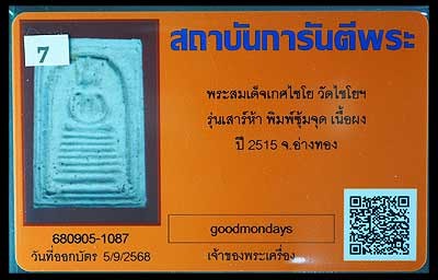 สมเด็จบางขุนพรหม 09 พิมพ์เส้นด้ายเล็ก ประกวดได้ที่ 1 มาพร้อมบัตรรับรองสมาคมค่ะ |