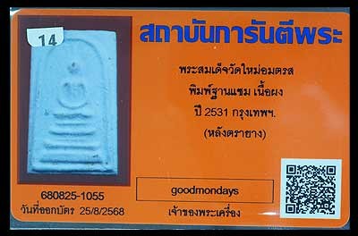 พระสมเด็จเสาร์ห้ารุ่นแรก ปี 2536 วัดระฆังฯ พร้อมกล่องเดิม ตรายางชัด ๆ |