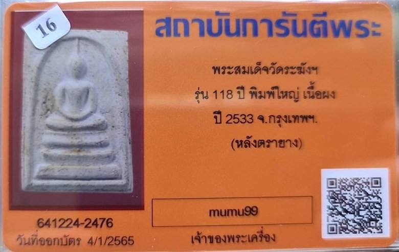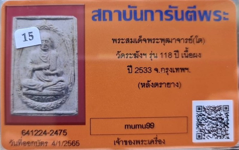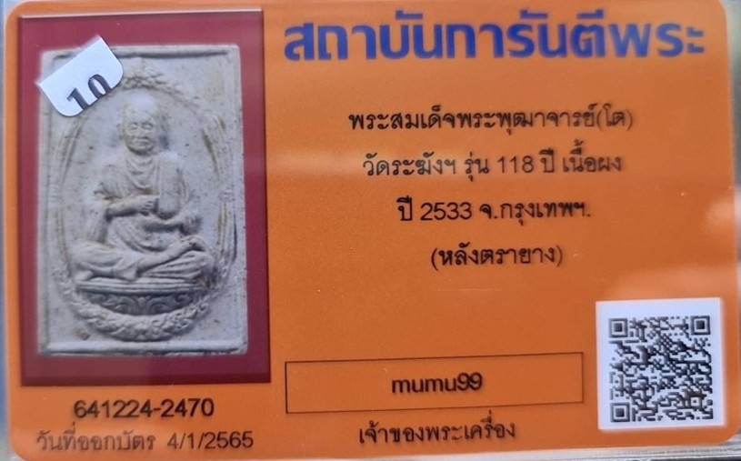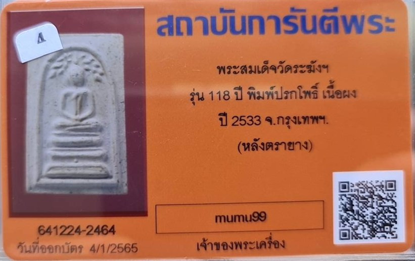 ## สมเด็จวัดระฆัง อนุสรณ์ 118ปี พ.ศ.2533 พิมพ์คะแนน "พระสวยเดิมไม่ผ่านการใช้.หลังปั้มตรายาง...พร้อมบัตรรับรอง.""รับประกันแท้ตลอดฃีพและแท้ตามมาตรฐานสากล....... อนาคตดี ถูกๆเลยครับ.... ราคายังไม่แรง.... |