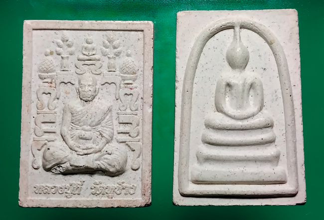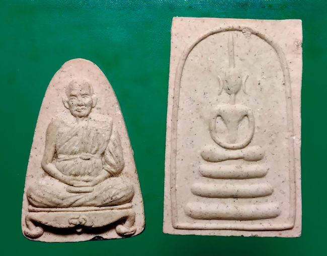 พระสมเด็จพิมพ์จัมโบ้ หลวงพ่อชำนาญ วัดบางกุฎีทอง จ.ปทุมธานี จำนวน 2 องศ์ เนื้อว่านน้ำตาลและว่านขาว