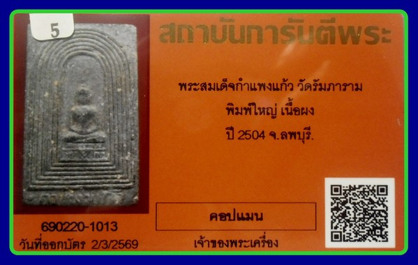 มีบัตรรับรองพระเครื่องของ