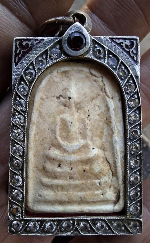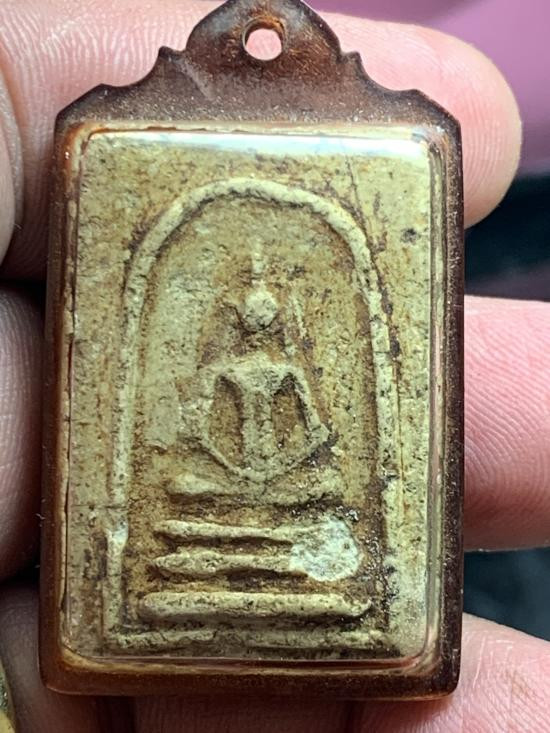 สมเด็จเก่าไม่ทราบที่ มีซ่อมตรงมุมล่าง ตลับปิดหลังไม่ทราบเงินกี่%เคาะเดียว |