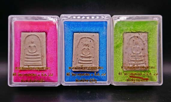 *วัดใจ* พระสมเด็จ หลวงพ่อสมชาย วัดเขาสุกิม เนื้อผงฝังพลอย จ.จันทบุรี |