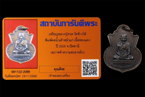 เหรียญหลวงปู่ทวด วัดช้างให้ รุ่น 3 พิมพ์ก้อนเมฆ เนื้ออัลปาก้า ปี พ.ศ. 2504 สภาพตามบัตรรับรอง |