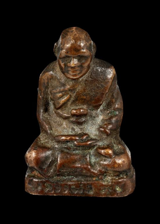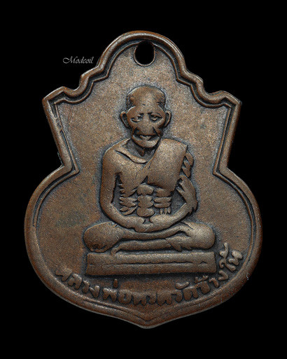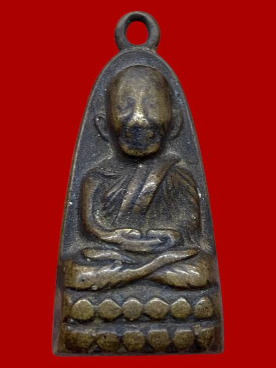 หลวงปู่ทวด วัดช้างให้ หลังตัวหนังสือเล็ก ( ว หัวตัน ) เนื้อทองเหลือง ปี 2505 |