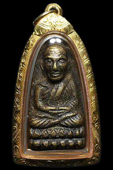 หลวงปู่ทวด วัดบางนอน เนื้อทองเหลือง (โค๊ตนะ) จ.ระนอง เลี่ยมทอง |