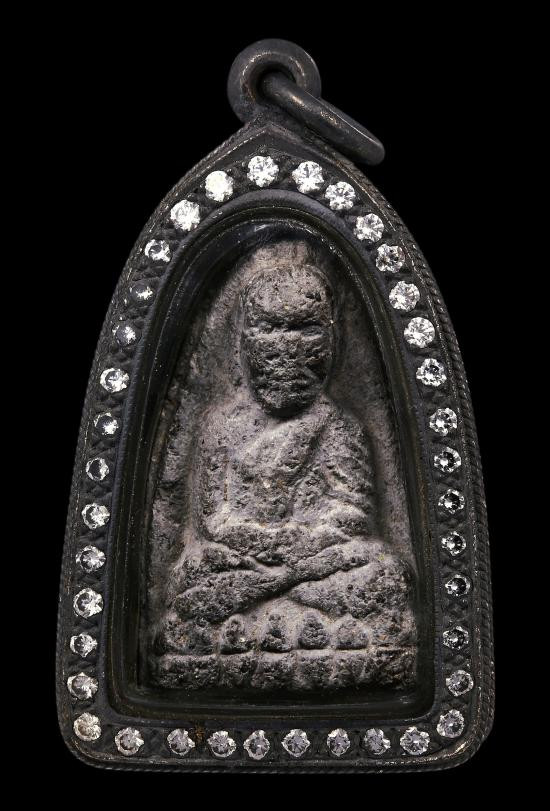 หลวงปู่ทวด วัดพะโค๊ะ พิมพ์ใหญ่ เนื้อว่าน ปี 2506 เนื้อดำสวยติดชัดทั้งหน้าและหลัง เลี่ยมเงินพร้อมบัตรรับรอง |