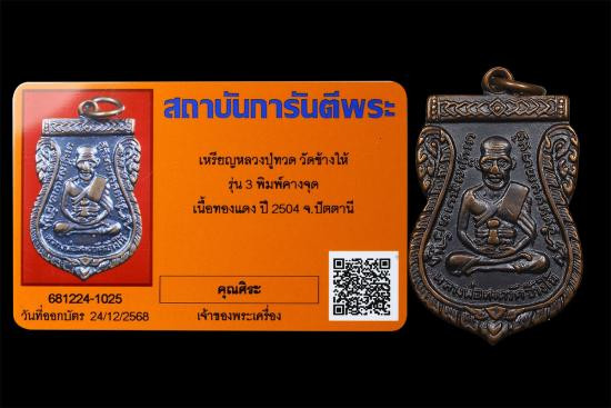 เหรียญหลวงปู่ทวด วัดช้างให้ครับ พร้อมบัตรรับรองจากเว็บ ผมไม่ทราบที่ ยี่ห้อรุ่นครับ พระรังเก่า ชุดนี้ผมไปเหมาบ้านที่กรุงเทพฯมาได้มาหลายอย่าง ทยอยลงครับ วัดใจเท่าไหนเท่านั้นครับ |