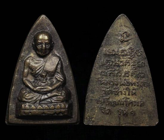 หลวงปู่ทวด วัดช้างไห้ พิมพ์หลังหนังสือเล็ก ว จุด เนื้อทองเหลือง ปี2505 |