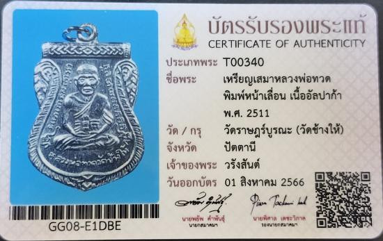 เคาะเดียวไวไว เหรียญเลื่อน หลวงพ่อทวด 101 ปี อาจารย์ทิม เนื้อทองขาว (อัลปาก้า)กรรมการ 2โค๊ต สวยพร้อมกล่องเดิมไม่ผ่านการใช้ (X1) |