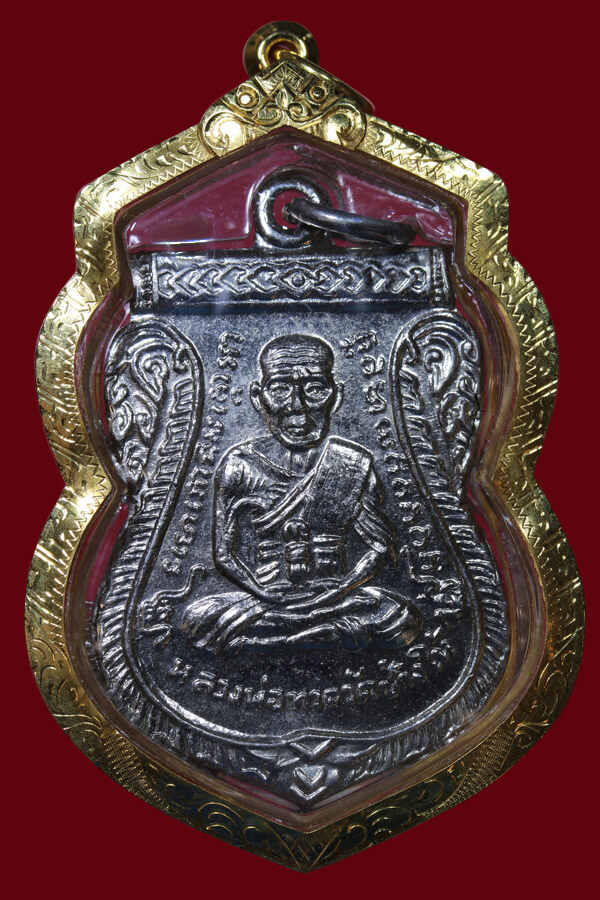 วัดใจเหรียญหลวงปู่ทวด วัดช้างไห้ พิมพ์พุฒซ้อน เนื้ออัลปาก้า ปี09 เลี่ยมทอง |