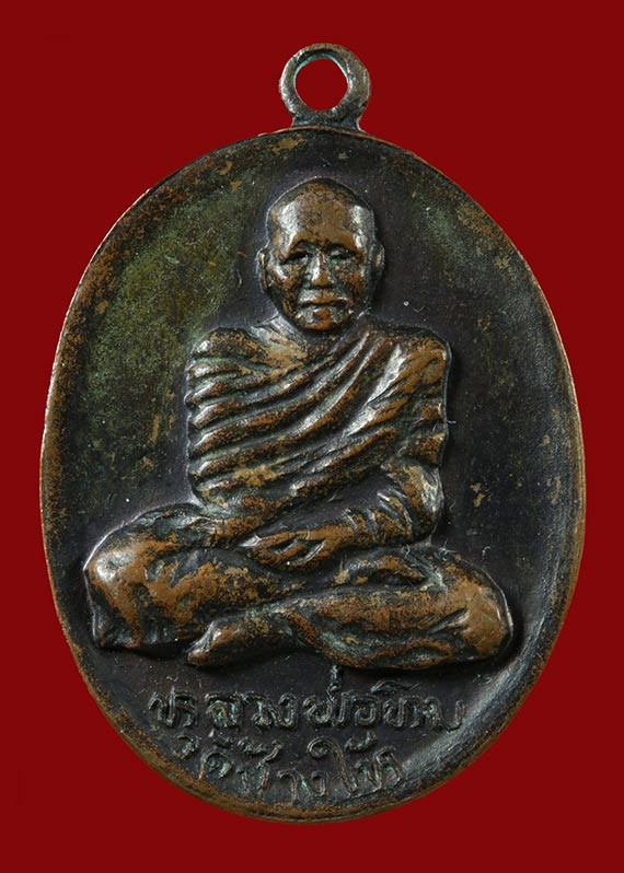 หลวงปู่ทวด วัดช้างให้ พิมพ์หลังหนังสือเล็ก (มีหู) เนื้อทองเหลือง ไม่ทราบปี จ.ปัตตานี |