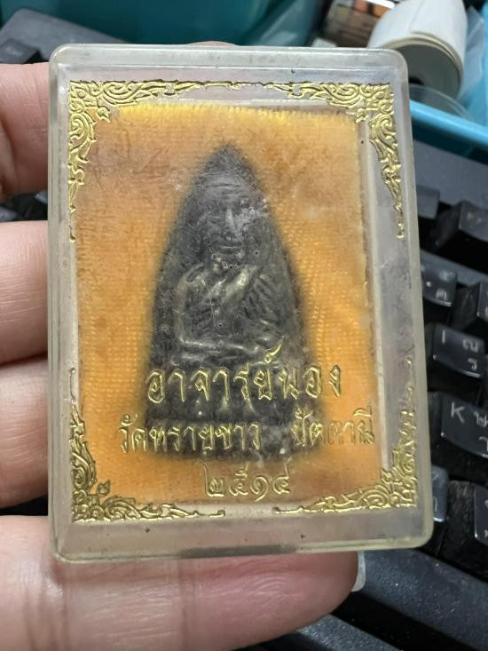 พระรูปเหมือนใบโพธิ์ อาจารย์นอง วัดทรายขาว จ.ปัตตานี รุ่นสร้างวิหาร เนื้อผงผสมว่าน พระสวยมาก ปี 2535 |