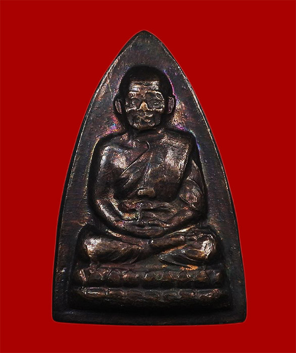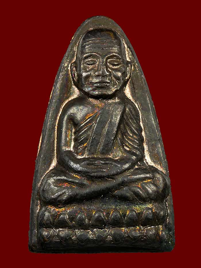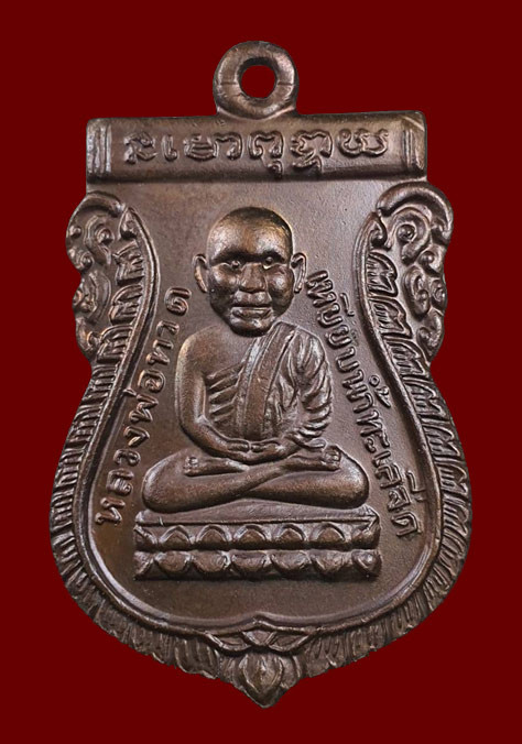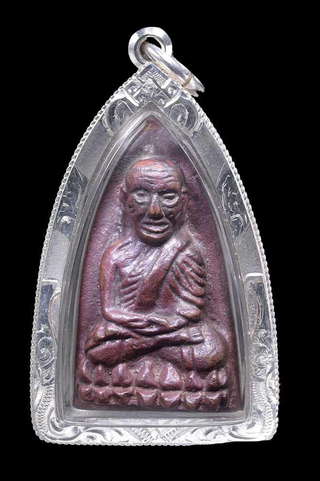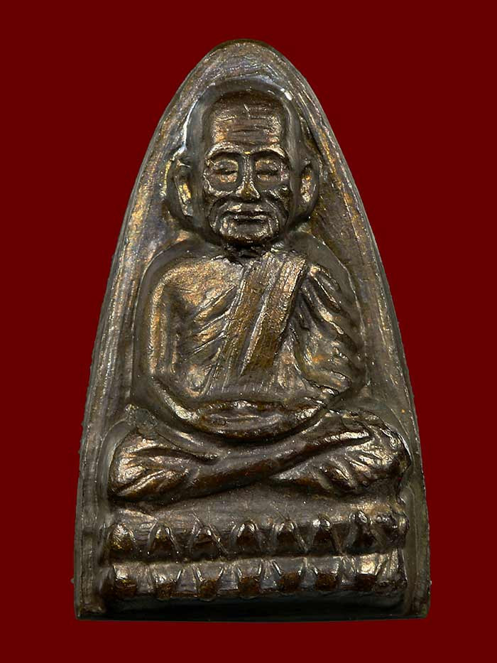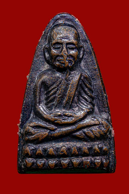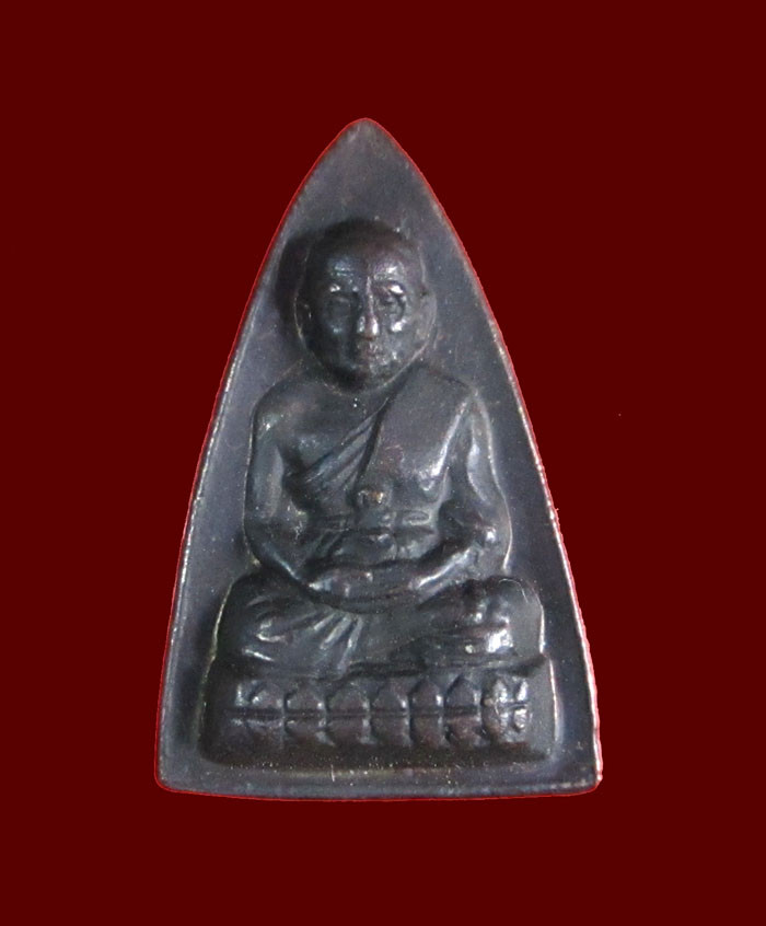 พระกลีบบัวหลวงปู่ทวด วัดช้างให้ ร.ศ. 200 ปี 2525 พิมพ์หน้าหนุ่ม เนื้อทองเหลืองรมดำ เคาะเดียวแดง องค์ที่ 1 |