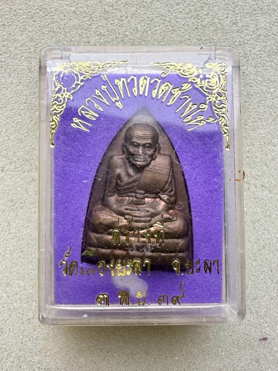 หลวงพ่อทวด พิมพ์พุฒซ้อน (ขี่คอ) ปี 39 หลัง 3.จุดบาง วัดช้างไห้ จ.ปัตตานี เนื้อทองแดงรมดำ อาจารย์นอง วัดทรายขาว |
