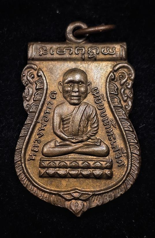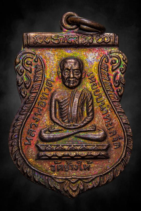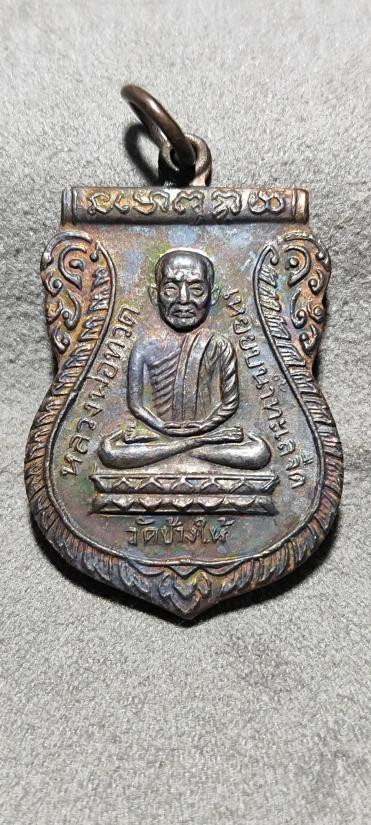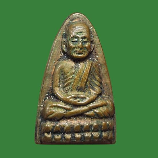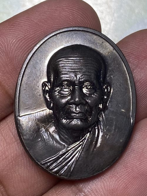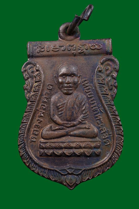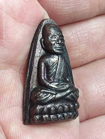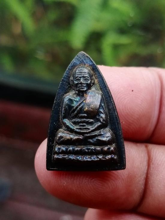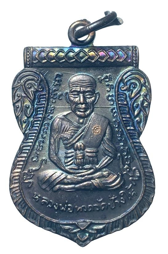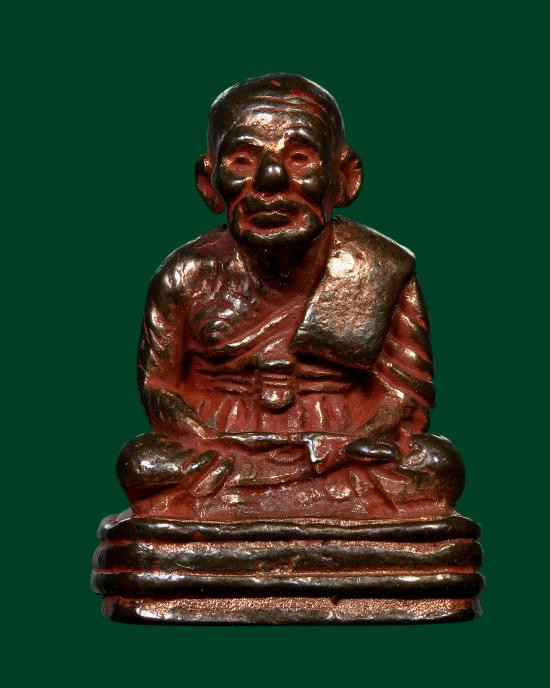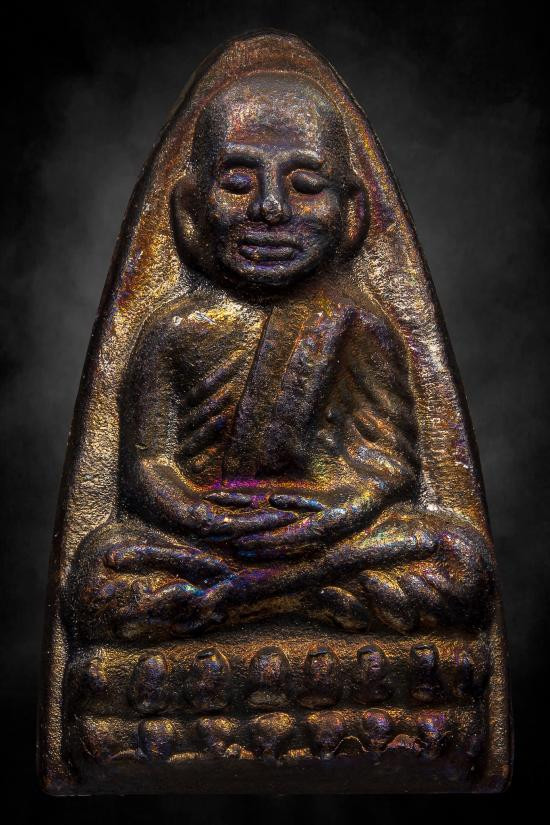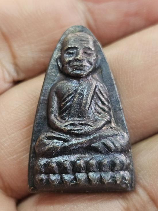 หลวงปู่ทวดหลังหนังสือ ปี2524 เนื้อทองแดง รมดำ ผิวเหลือบรุ้ง |