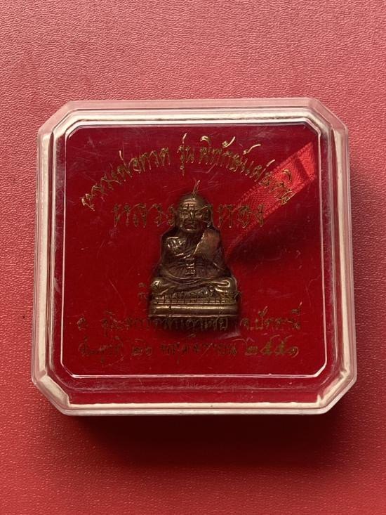 เคาะเดียวแดง พระกรื่ง หลวงพ่อทอง รุ่น ทองฉลองเจดีย์ เนื้อ นวะแก่ทองคำ |