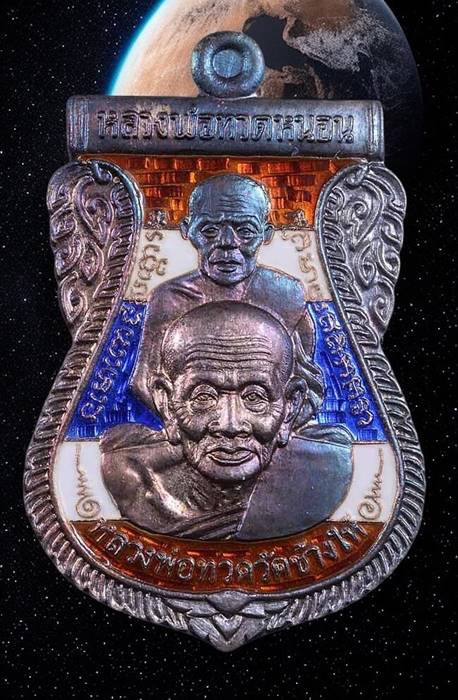 สวยจริงๆ เดิมๆขึ้นรุ้ง เหรียญหลวงปู่ทวด อาจารย์ทอง วัดสำเภาเชย พิมพ์พุทธซ้อน รุ่นพระธาตุเจดีย์ เนื้อเงินลงยาลายธงชาติ ปี 2549 จ.ปัตตานี |