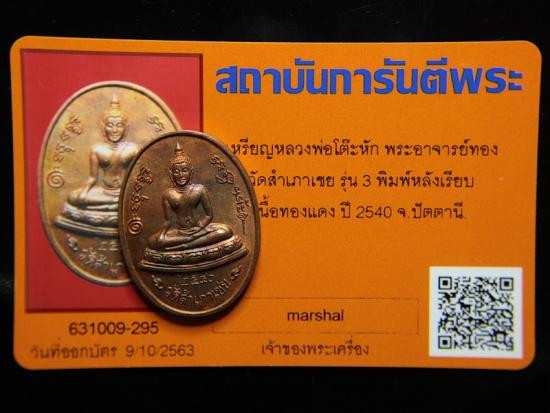 หลวงพ่อทวด เนื้อว่าน รุ่นทองฉลองเจดีย์ อาจารย์ทอง วัดสำเภาเชย ปัตตานี พ.ศ.2552 |