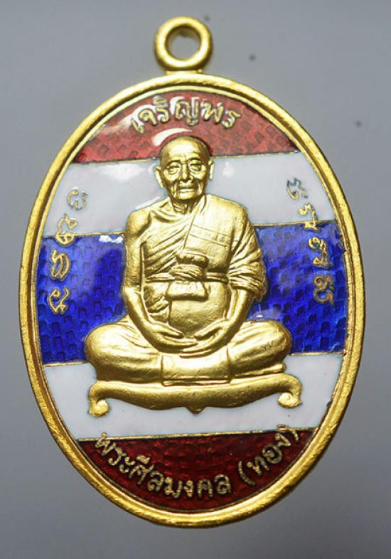 เหรียญหลวงพ่อทอง รุ่น เจริญพร 54 เนื้อทองแดงนอกลงยาสีธงชาติ เลข 4322 |