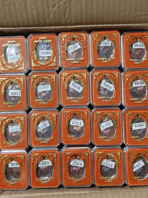 ยกลัง 100 องค์ มีกล่องครับ เนื้อทองแดง (พิมรูปใข่ครึ่งองค์หลังยันต์ห้า) แยกชุด รุ่น กฐิน 58 พ่อท่านเขียว วัดห้วยเงาะ อำเภอโคกโพธิ์ จังหวัดปัตตานี |