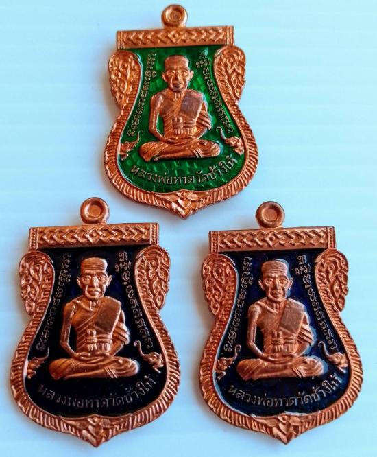 เคาะเดียวแดง.....เหรียญเสมาหลวงพ่อทวด-พ่อท่านเขียว รุ่นกันภัย 58 วัดห้วยเงาะ จังหวัดปัตตานี ปี 58 เนื้อทองแดงลงยาแดง จำนวน 3 เหรียญ พร้อมกล่องเดิม |