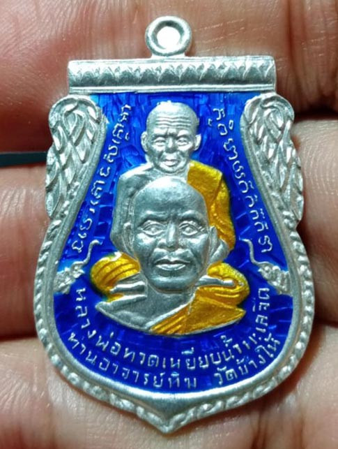 เสมาเล็กหน้าเลื่อนหลัง พ่อ เขียว รุ่น สรงน้ำ 55 ปี 2555 เนื้อ เงินแท้ลงยาสี น้ำเงิน เลี่ยมกันน้ำพร้อมใช้ ขนาดประมาณ 2.4 ซม. พระสวย หายากแล้วราคาจอง 700 บาท เมื่อปี 2555 ครับ |