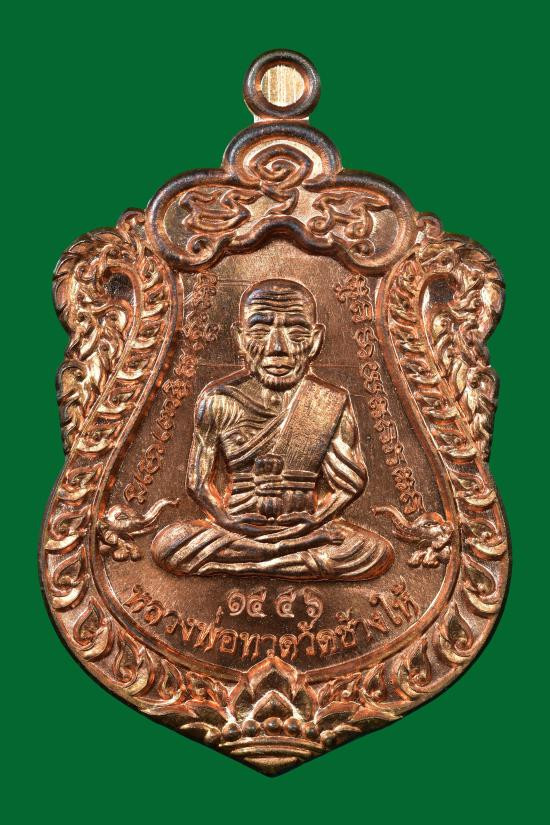 เคาะเดียวแดง หลวงพ่อทอง รุ่นพิทักแผ่นดิน เลข 734 เนื้อ นวะแก่ทองคำ |