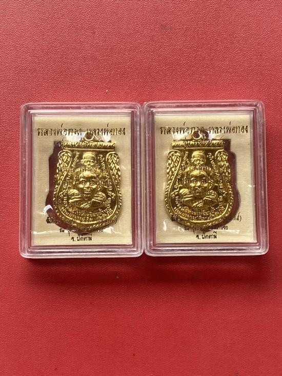 เคาะเดียวแดง หลวงปู่ทวด อาจารย์ทอง รุ่นแซยิด93 พิมพ์ใหญ่ 2องค์ เนื้ออัลปาก้าผิวเปียกทอง |
