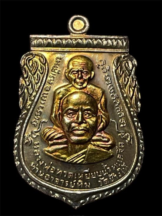 เหรียญเลื่อนสมณศักดิ์หลวงปู่ทวดพ่อทองวัดสำเภาเชยเนื้อทองแดงรมดำปี 2545 สภาพสวย |