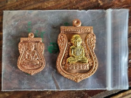 เคาะเดียวแดง อาจารย์ทองรุ่นทองฉลองเจดีย์ 2องค์ พิมพ์เลื่อน เนื้อทองแดงรมดำ |