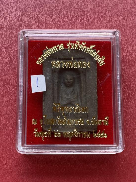 เคาะเดียวแดง หลวงปู่ทวด อาจารย์ทอง รุ่นพิทักษ์แผ่นดิน เนื้อชุบทอง หัวขีดกรรมการ |