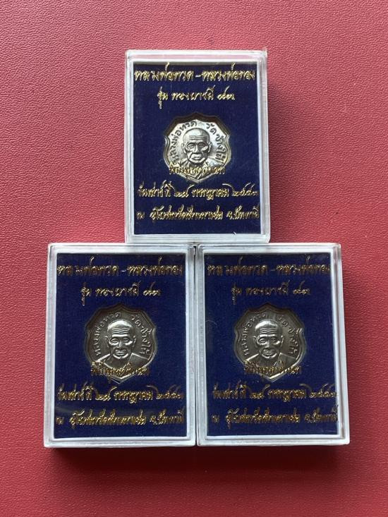 เคาะเดียวแดง หลวงปู่ทวด อาจารย์ทองรุ่นทองบารมี93 เนื้อ อัลปาก้า 3องค์ |