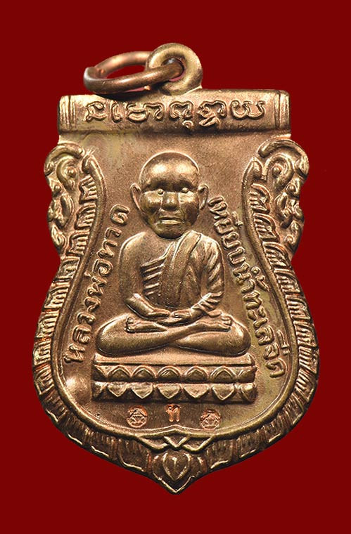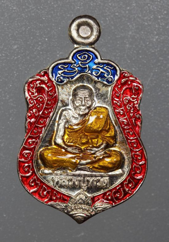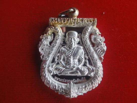 เหรียญหลวงปู่ทวด พ่อท่านทอง วัดสำเภาเชย จ.ปัตตานี ปี 2552 รุ่นทองฉลองเจดีย์ เนื้อเงินลงยาสีแดง ซีลเดิมพร้อมกล่อง |